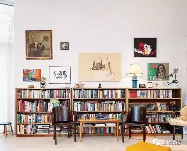 或者用几块搁板,把整面墙都做成书架,经常阅读的书籍放在中层,其他书籍放在中下层,方便拿取。