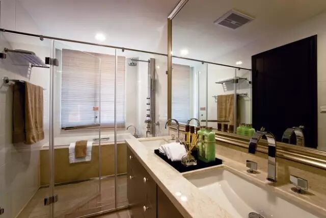 简简单单,大气又时尚。大餐厅布局,镜面很有轻奢的时尚感。