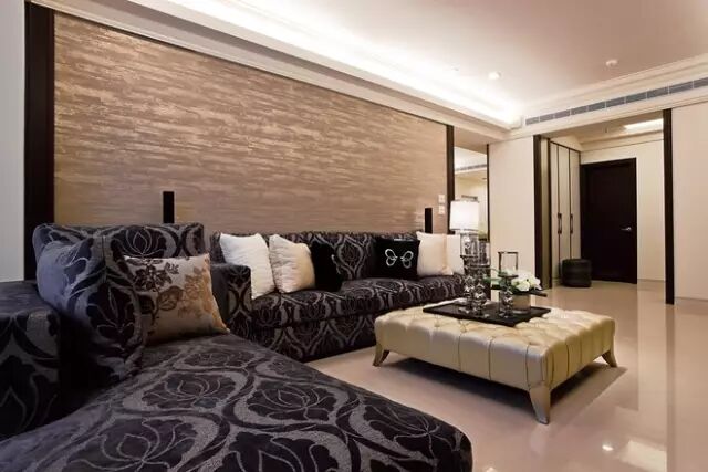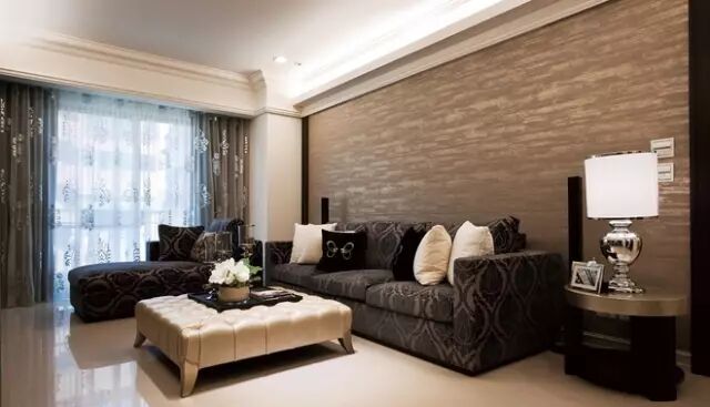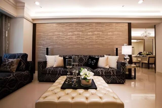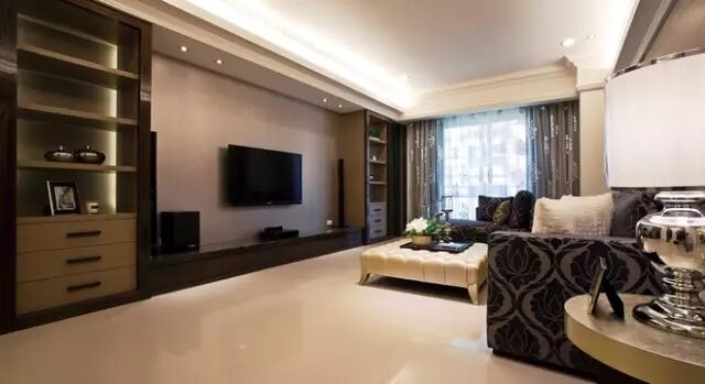 素色的客厅地砖让整体显的十分整洁,银色的沙法墙形成时尚的空间背景。