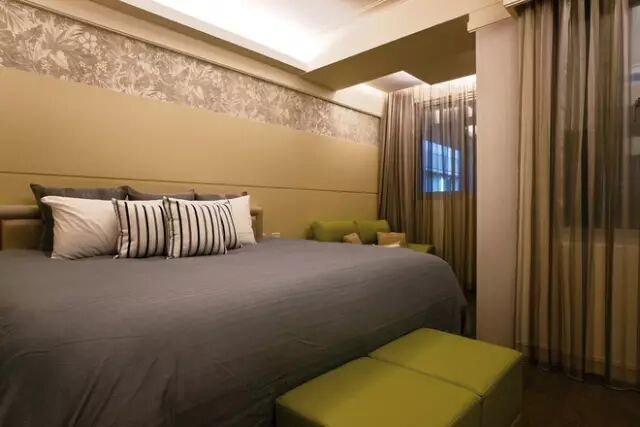 灰色+绿色带点艺术的小清新,次卧显得更加休闲。