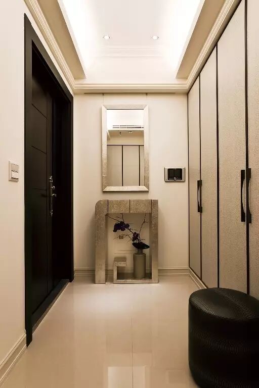进门就是时尚的玄关格调,银色玄关柜台方便进门随手放钥匙之类的小物件。